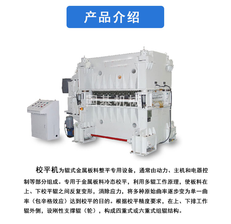 板料校平機為輥式金屬板料整平專用設備,通常由動力、主機和電器控制等部分組成。專用于金屬板料冷態校平,利用多輥工作原理,使板料在上、下校平輥之間反復變形,消除應力,將多種原始曲率逐步變為單一曲率(包辛格效應)達到校平的目的。根據校平精度要求,在上、下排工作輥外側,設剛性支撐輥(輪),構成四重式或六重式組輥結構。